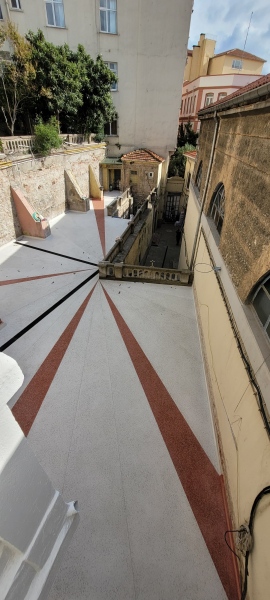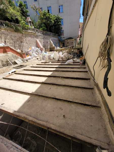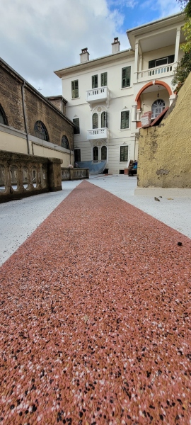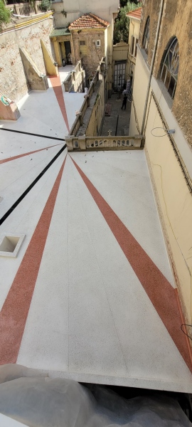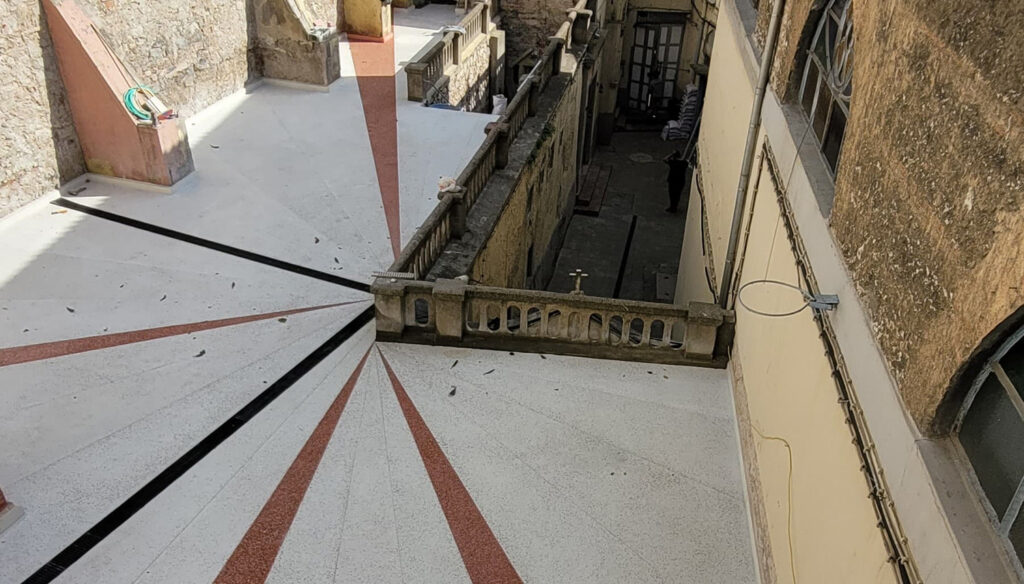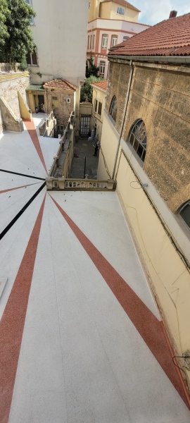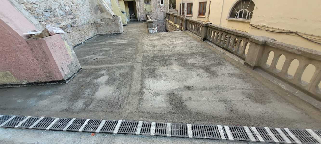 The historic Sen Piyer Monastery, built in the 17th century, has been revived following restoration work that preserves its original texture. As part of the project, the old floor on the terrace was broken down in layers, cleaned, and the debris removed. All water drainage systems on the monastery’s terrace were renewed, and thermal and acoustic insulation was applied to the floor. Then, a terrazzo (cast mosaic) application, known for its aesthetic appeal and durability, was carried out, ensuring that the historic structure was harmonized with modern needs.